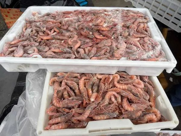 在珍源水产摊位,店主张科冰正忙着为顾客打包冻虾。“我们家主打冻品虾类,休渔前囤的冻竹节虾、活皮虾、红虾,现在就剩下活皮虾,其他都卖光了。”张科冰一边称重一边说,“活皮虾来自舟山,按规格大小售价200元/箱至400元/箱(10斤装),现在每天能卖出100多箱。”