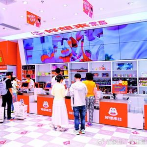 图为顾客在位于石家庄勒泰中心的好想来品牌零食华北首家城市旗舰店选购商品。