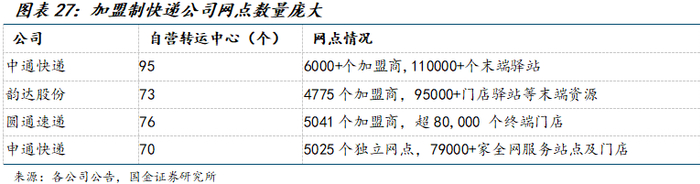 3.4 加盟制快递公司:无人物流车应用帮助加盟商降本,利于网络稳定健康发展