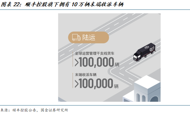 顺丰控股已投入使用超过800台无人车。根据2024年年报,顺丰控股在中转场和网点间的支线运输环节、网点和小哥收派区域间的接驳运输环节、以及园区和校园等封闭型区域的收派环节,投入使用超过800台定制化无人车,实现快件短途支线的自动化运输及收派,提升效率并降低成本。