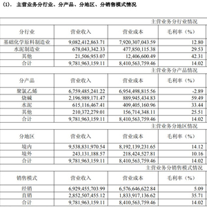 2024年财报显示,年内公司三大主营产品PVC、烧碱、水泥的营收规模均同比下滑。盈利能力方面,除PVC毛利率为负,烧碱、水泥的毛利率也在下滑。