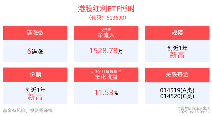 规模方面,港股红利ETF博时最新规模达41.65亿元,创近1年新高。