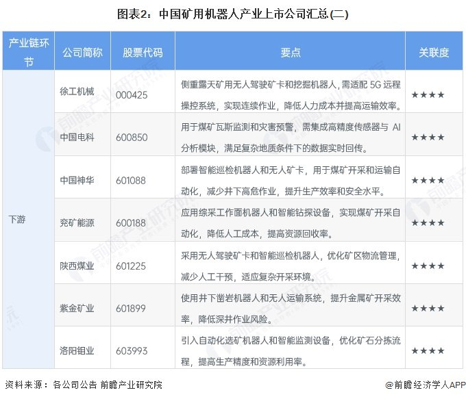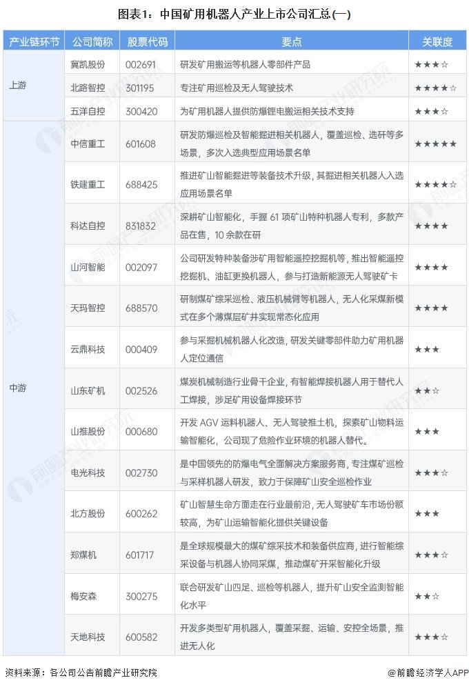 矿用机器人行业上市公司汇总