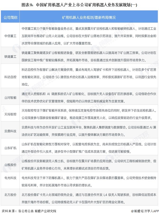 矿用机器人产业上市公司业务规划对比