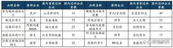 热门品种富马酸伏诺拉生片原研企业为武田,2014年全球首次获批,2019年进入中国市场。国内布局该品种的仿制药企众多,首家过评企业为山东新时代,目前过评企业总计14家。