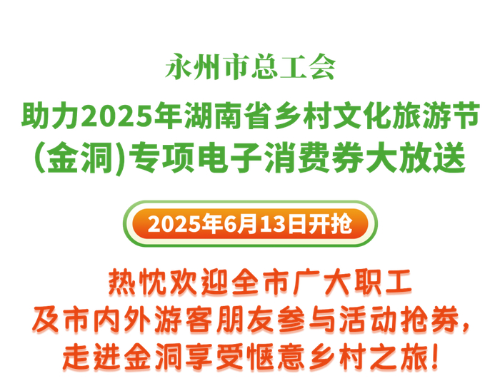 湘村文旅节 工会带你嗨!永州市总工会助力湖南省乡村文化旅游节专项电子消费券大放送!
