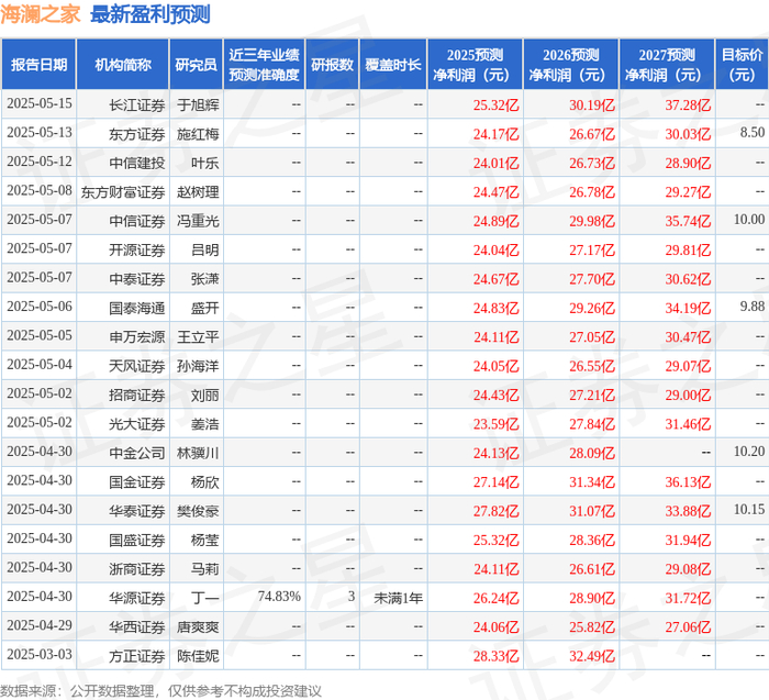 证券之星数据中心根据近三年发布的研报数据计算,华源证券丁一研究员团队对该股研究较为深入,近三年预测准确度均值为74.83%,其预测2025年度归属净利润为盈利26.24亿,根据现价换算的预测PE为13.51。