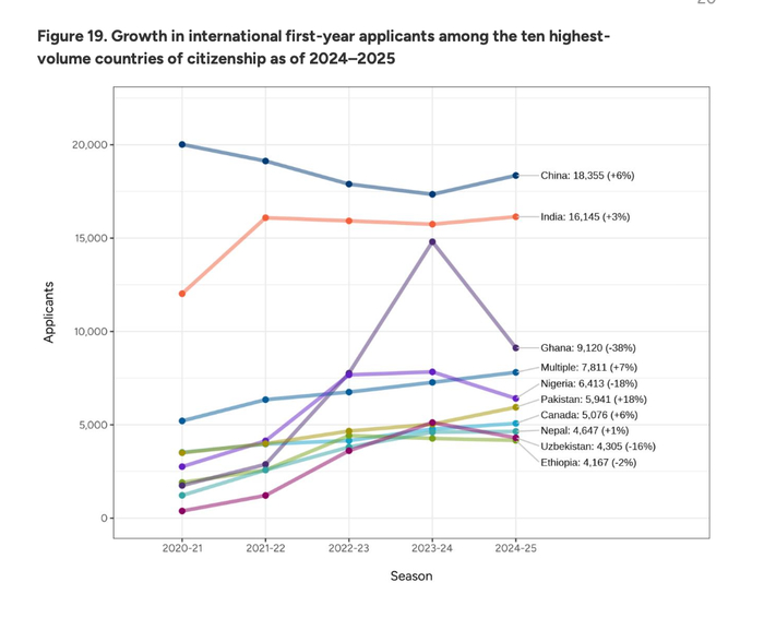 进入2025年,申请美国本科的中国学生似乎有所回暖。根据国本科网申系统Common App今年3月披露的数据,截至3月1日的2024-2025申请季,中国学生的申请量在连续3年下跌后迎来首次回升,同比上涨6%,并且申请量超过了印度。