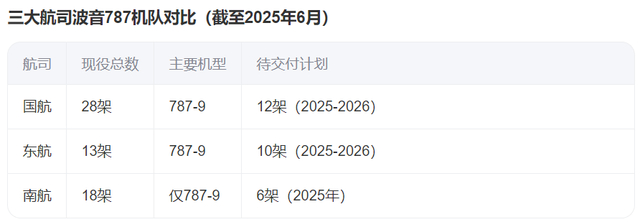 最后是南航,波音飞机大概247架,占南航飞机总数的37.6%。其中,18架为787-9机型,今年还要接收6架。在2024年11月,南航清仓了全部10架787-8机型。