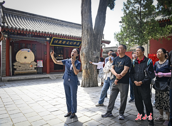 游客跟随讲解员脚步参观伏羲庙。