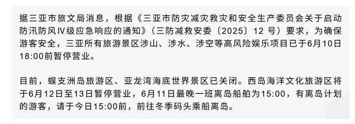 三亚涉山、涉水、涉空等高风险娱乐项目已暂停营业