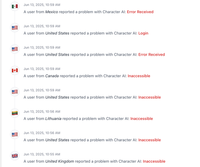 据 Down for Everyone 网站数据显示,Character AI 于周四太平洋夏时令上午 11:19 已收到约 4000 份中断报告。
