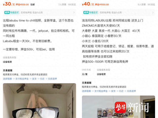 一名线上出租卖家表示:“LABUBU作为近期大火潮玩单品,适合拍照出片,租客多为准备聚会或拍摄社交平台照片、短视频等,相比高价费心购买,租赁能降低尝鲜成本。”