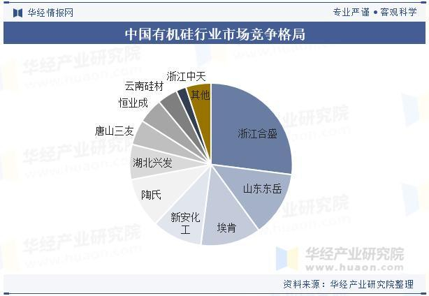 由于市场需求的持续增长和技术进步,硅油行业的竞争日趋激烈。中国硅油行业的市场集中度较高,主要由少数几家大型企业主导。尽管行业内有许多中小企业,但由于硅油行业的技术要求较高,进入门槛较高,许多中小企业在技术创新和产品质量方面难以与大型企业竞争,市场份额相对有限。目前浙江合盛占据了最多的市场份额。