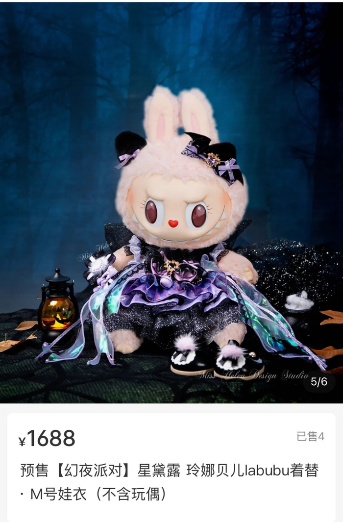 DiDi是一位全职妈妈,5年前开始做娃衣。2024年,由于Labubu大火,她的一位娃妈朋友向她订购了一套原创设计的娃衣,完工后她顺手将这款娃衣挂在了某二手平台展示,意外地吸引了许多消费者前来订购。当时DiDi正值换工作空窗期,发现这一商机后,她便决定全职从事娃衣事业,Labubu娃衣也成了她店内的主力产品。