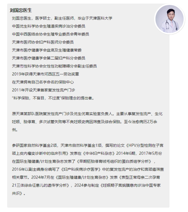 14年始终坚守。迄今为止,新生儿出生20000余人,平均每天都有5~9名宝宝平安降生,保胎成功率高达90% 。同时,建立了强大的数据库,为“不盲目不过度,科学保胎”提供了重要的理论依据。以刘国忠主任为首的“刘国忠保胎中心”汇聚了多位专业保胎人才,其中主任医师一名,副主任医师一名,主治医师两名,保胎博士一名,硕士两名,本科生两名,共10余位团队成员。共同致力于为更多求子患者提供科学系统保胎诊疗服务。