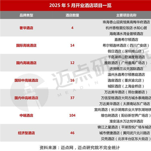 酒店之家发布的《2025中国酒店投资白皮书》显示,截至2024年12月31日,全国酒店总量突破37万家,客房规模超1850万间(15间客房及以上)。据迈点研究院不完全统计,2025年5月新开业酒店共计233家。