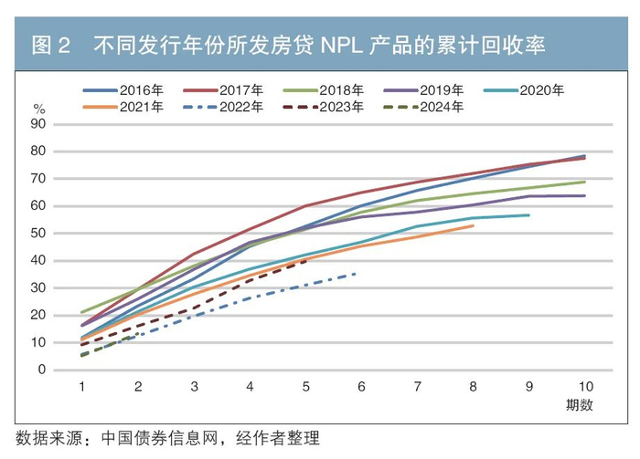 二是受抵押物估值中枢下移、司法处置周期延长等因素影响,2022年后所发房贷NPL产品的回收率较前期有所下滑。