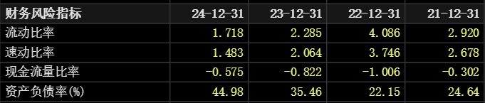 2025年一季度,君实生物的资产负债率为47.98%,同比增长6.35个百分点;流动比率为1.398,速动比率为1.204,均低于2024年一季度流动比率和速动比率的数值(2.087、1.906)。