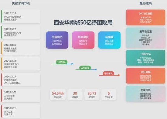 如此多层嵌套之后,表面上由特区建发主导的纾困行动,内部主要由两家金融机构(中国信达、华夏银行)“扛”了下来。其结果,是各方均被牢牢拴在西安华南城这个项目上。