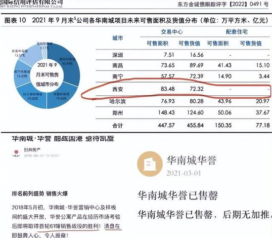不难看出,从资产变现角度看,信达加入“50亿纾困计划”前西安华南城的处境是:相对好卖的产品(住宅、公寓、商业)多已售罄,即便批发市场里可售铺面也现货不多,留给接盘侠的更多是闲置已久的待开发土地。