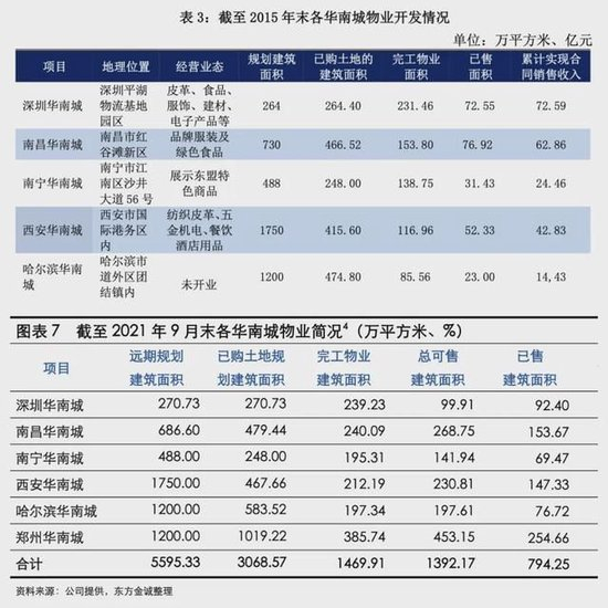 2019年的公司债募集说明书公布的项目进展数据,启动全国布局后10年里,西安华南城以最宏大的蓝图开局,以最低的建设完成度落后,不同维度的财务数据均反映当时其“规划老一,进度垫底”的处境。