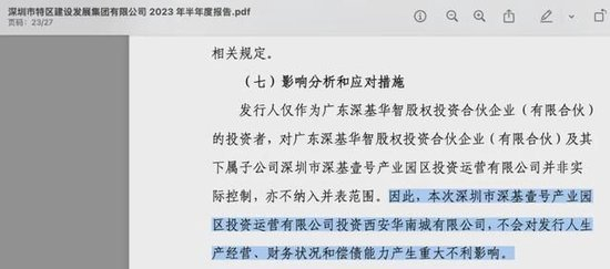 2023年8月31日,各方交易刚刚初步完成,特区建发在其公司债半年报中对这笔投资轻描淡写称:“不会对发行人生产经营、财务状况和偿债能力产生重大不利影响。”