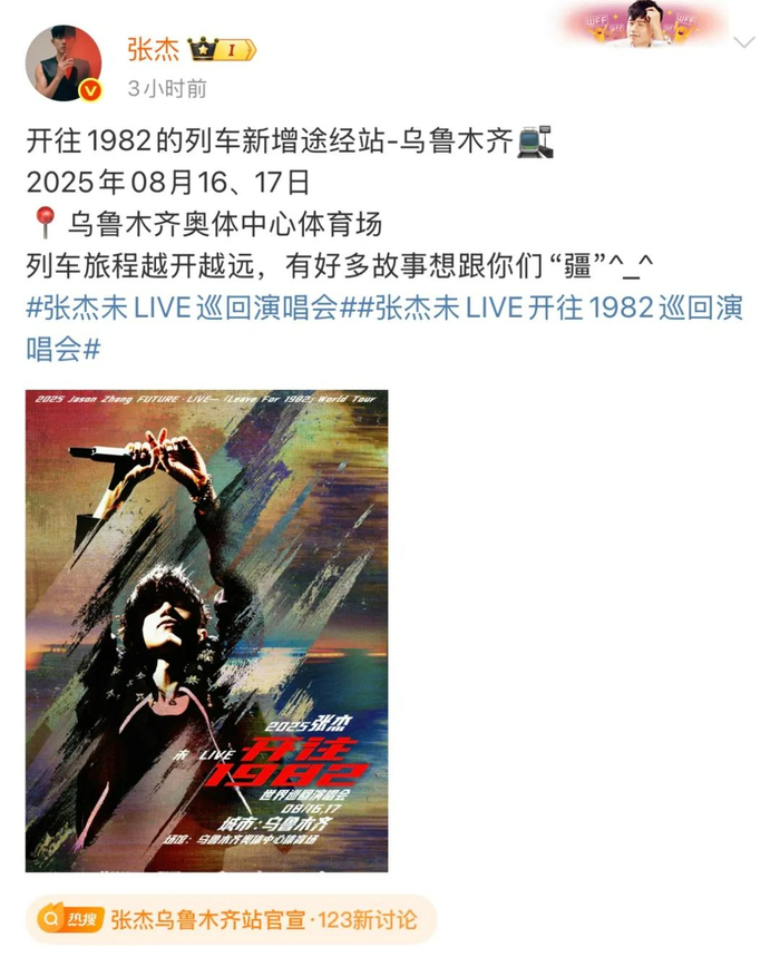 张杰发文官宣!即将在乌鲁木齐开唱!
