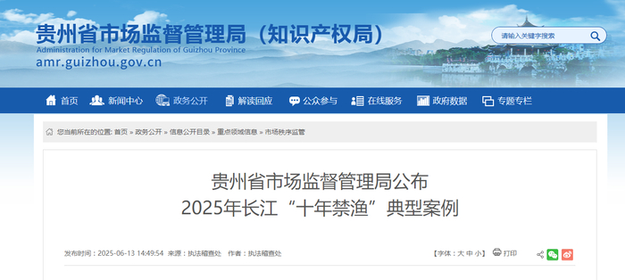 贵州省市场监督管理局公布2025年长江“十年禁渔”典型案例