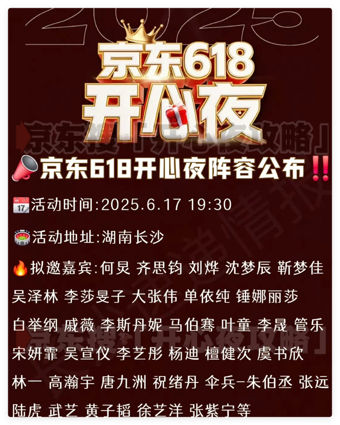 2025京东618开心夜节目单:6月17日晚上直播在哪看?嘉宾名单有哪些?