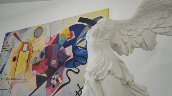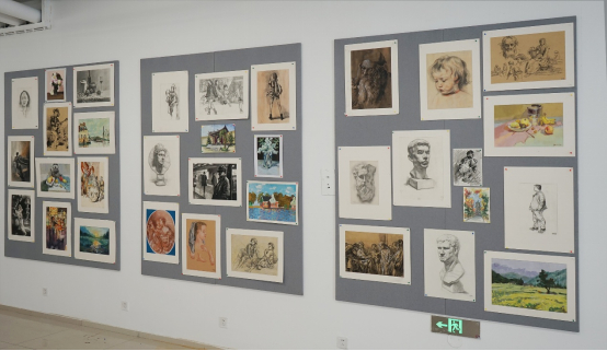 创艺中心东侧为艺术空间展厅,展厅视野宽阔,配有专用展板、展桌、展台,日常用于展览陈列学生优秀作品,是同学们探讨艺术、畅游艺术世界的重要场所,也是学校推动和践行美育教育的重要平台。在艺术空间,已为美术生举办多场高质量的专业画展,并受到了家长、师生的认可,得到了专业领域众多大咖的肯定。