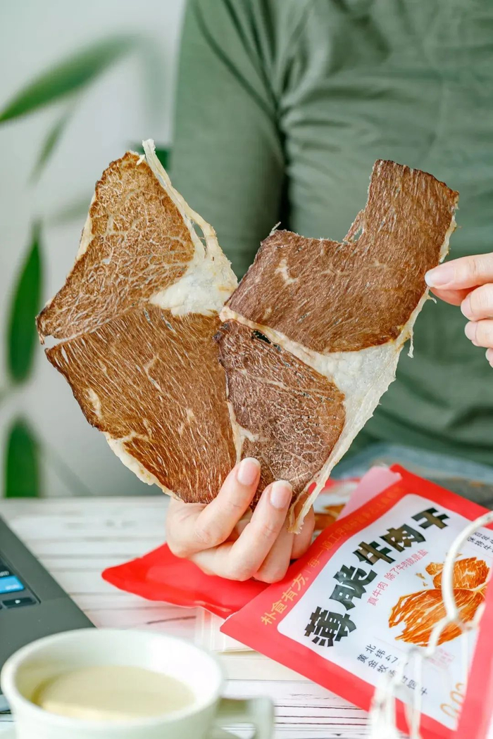 干到一滴油都没有,简单食盐调味,一口牛脆脆可以尝到牛肉最本质的香味,拆开就是秒没,趁有活动一定要多囤几箱哦~
