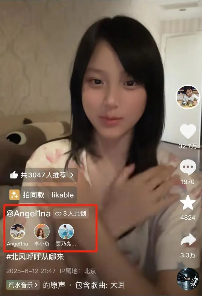 6月12日晚,李小璐、贾乃亮、甜馨在抖音发布共创视频,这也是三人之间的第一次共创视频。