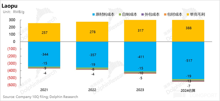 目前来看,老铺制造成本中,设计和工艺制造支出在总的销售成本占比中只是稍高了一些,但这少量的设计工艺成本上身带来的毛利率提升却非常明显,而整个毛利的溢价也主要来源于此。