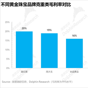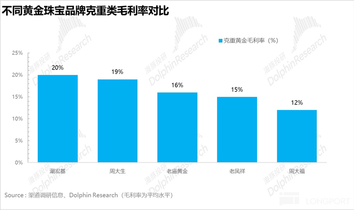 但尽管不同品牌之间加工费存在差异,普遍来讲,克重黄金的毛利率并不高,行业平均水平在 15% 左右。