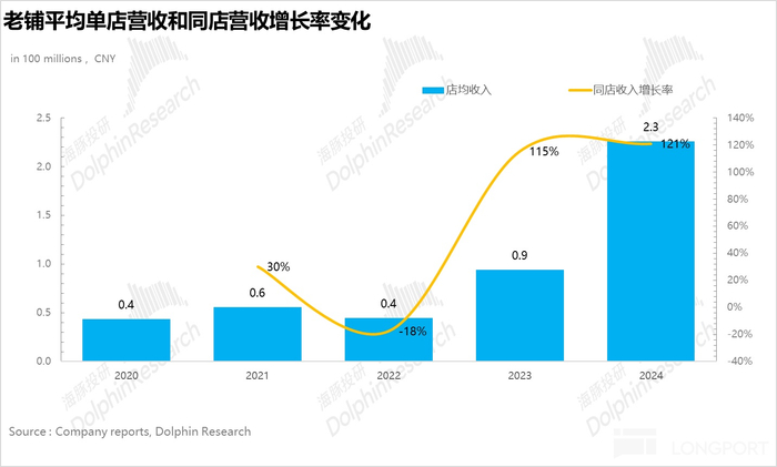 根据 2024 年年报,老铺新增家门店贡献的营收增量占比仅 15%,85% 的增长来自存量门店门店效益的提升。