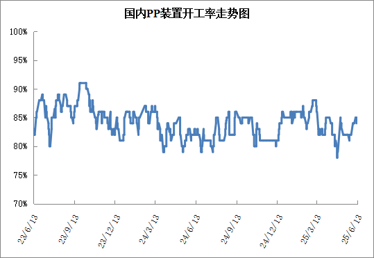 本周PP开工率稳定在85%附近,供应压力不大,预计低开工率6月份仍有望维持,7月份开始开工率反弹。