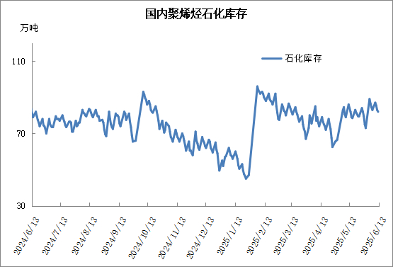 截至6月13日石化聚烯烃库存81万吨,较上周下降2万吨,库存小幅去化。虽然下游工厂阶段性补库力度略偏强,但是石化供应陆续回归,部分进口资源到港,市场资源较充足,所以石化去库较慢。下周供需预计均变化不大,石化去库驱动有限,去库或维持较慢。