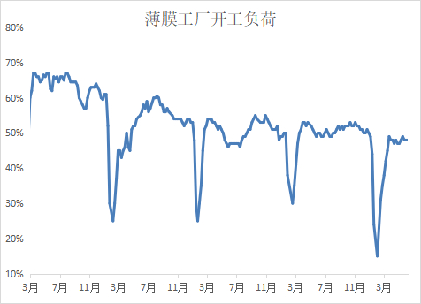 本周PE包装膜开工负荷维持48%左右,订单天数缩短,原料库存天数缩短。要受新单及执行订单增减影响,部分企业执行订单陆续交付,受终端需求市场偏弱影响,长协新单尚未明显跟进,订单排产天数小幅减少,支撑开工率环比下跌。后市看,PE包装膜企业平均开工率小幅下降1%左右。随天气转热,部分食品生产进入淡季,冷饮包装备货高峰已过,多短协零散单为主,日化包装消费平淡,整体需求偏弱,支撑开工有限,预期开工环比有小幅下跌走势,支撑有限。