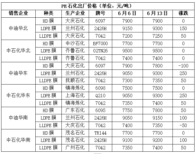 PE出厂价统计