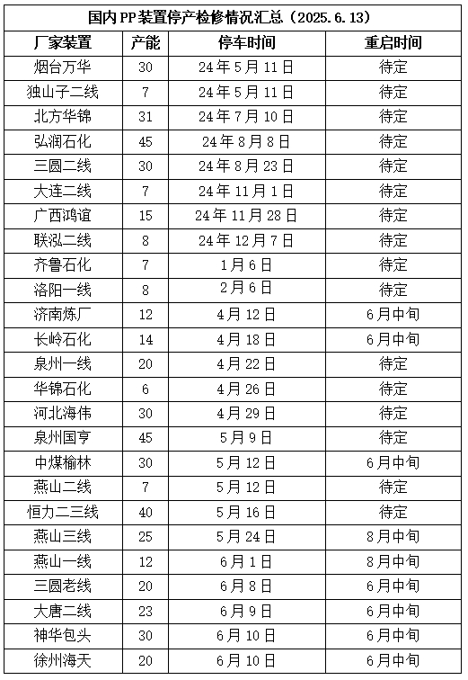 PP供应分析——检修汇总