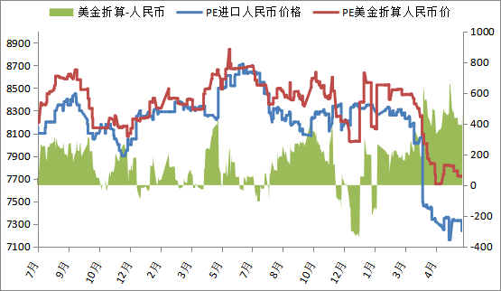 本周PE进口线性美金主流价格增多,价格在870-910,折算人民币成本在7700-8050,市场主流7200-7300,高国产线性500-750。