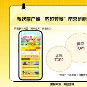 “我是扬州炒饭为苏超加油”“苏超南哥品质大龙虾”“苏超联赛酱排骨VS大麻糕”……6月以来,网络上涌现不少应援“苏超”的主题餐饮套餐。美团数据显示,端午假期后,江苏省堂食消费依然火热,线上订单量稳居全国第二,其中,南京稳居全省第一,连云港、徐州、淮安堂食线上订单量同比增长均在40%以上。