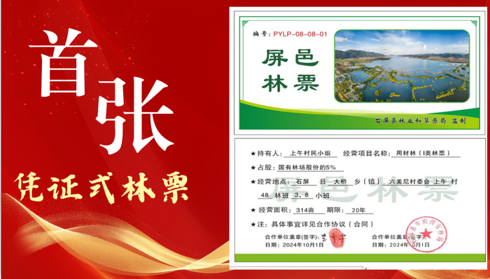 创新发行“屏邑”碳票、林票,分别成为全国首家县级林业碳票实现全链条数字化闭环管理的应用范例、全省首家林权资产折资量化的林票县级范例。