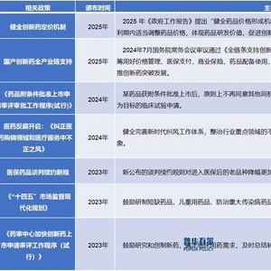 国家及各地政府出台了一系列政策、措施支持创新药发展。2024年3月,“创新药”第一次被写进《政府工作报告》;7月,国务院常务会议审议通过《全链条支持创新药发展实施方案》;同月,上海市政府印发实施《关于支持生物医药产业全链条创新发展的若干意见》;12月,国务院常务会议聚焦药品医疗器械监管改革,促进医药产业高质量发展,加大对药品医疗器械研发创新的支持,发挥标准引领作用,积极推广使用创新药;2025年1月,国务院办公厅印发《关于全面深化药品医疗器械监管改革促进医药产业高质量发展的意见》,从5大方面提出了24条改革举措,主要从优化审批、简化流程和加强监管等角度促进医药产业高质量发展。