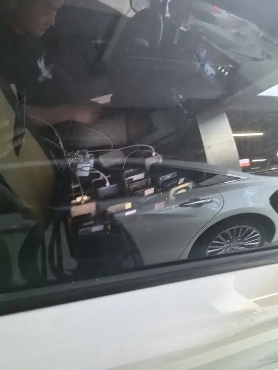 到了地方,师傅指了指某辆车,示意我自己悄摸摸去看。走到跟前,看到车里前后座分别坐着人,车里插满了至少几十台手机。看到我从后面往里瞄,警觉地摇起了车窗。