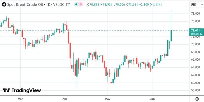 受该消息影响,国际油价大幅上涨,布伦特原油期货主连价格一度涨7%至每桶78.53美元,为今年1月以来的最高水平。