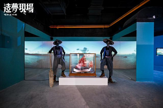 由管虎、费振翔共同执导,朱一龙、吴磊、倪妮领衔主演的电影《东极岛》日前定档8月8日,受到影迷期待。展览中有专门的《东极岛》展区,可以看到电影的场景图、道具等,还有朱一龙、吴磊在片中穿着的服装展示。影片取材自中国渔民营救英军战俘的真实故事,他们在片中饰演的是一对渔民兄弟。两件服装都是黑灰色棉麻材质,细节设计上各有不同,一件服装的裤脚上还带有磨损痕迹。
