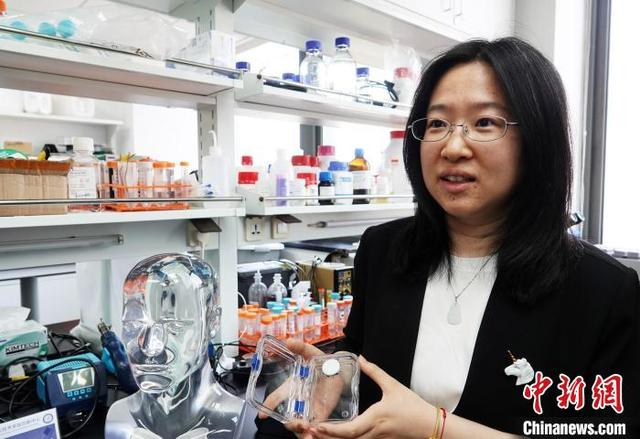中国科学院脑科学与智能技术卓越创新中心李雪研究员,向媒体展示介绍团队研发的目前全球最小尺寸的脑控植入体。中新网记者 孙自法 摄
