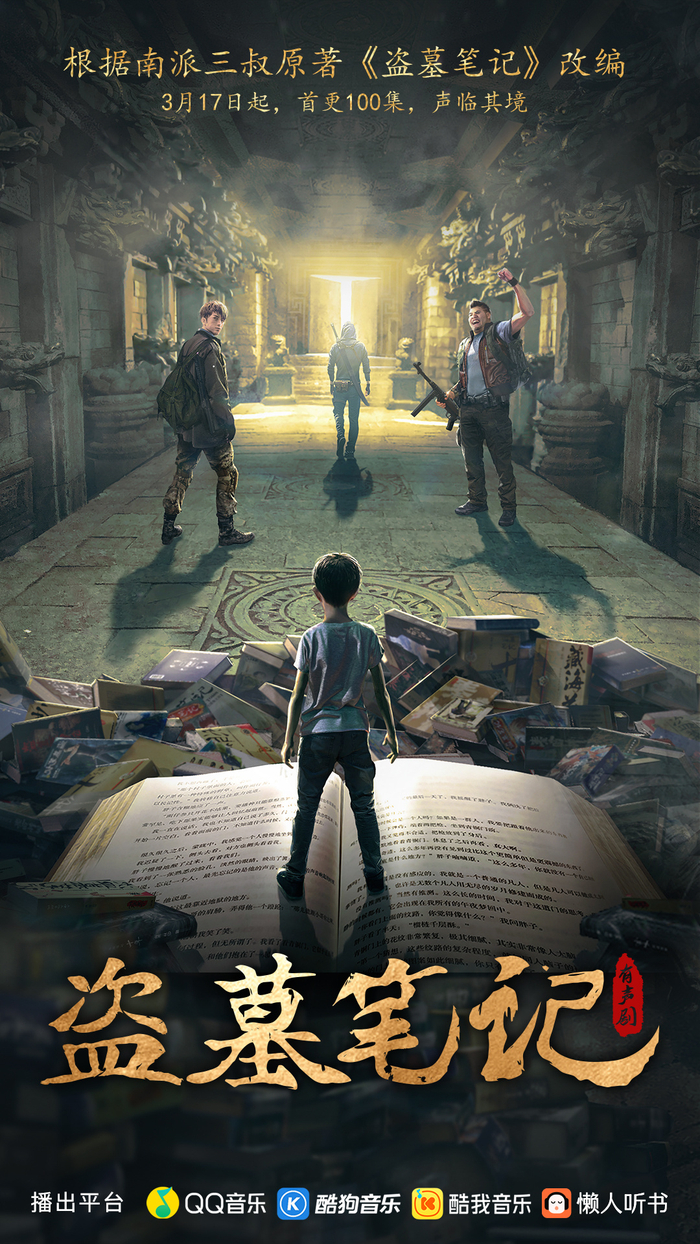 腾讯音乐在今年一季度财报中更是着重强调,其与南派三叔共同打造的《盗墓笔记》多人有声剧,创下平台最快破千万播放量的有声剧专辑纪录。